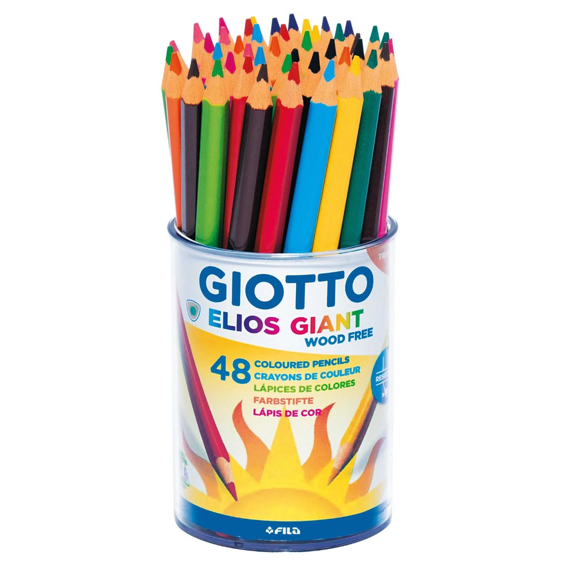 Giotto elios giant woodfree assorted colouring pencils pot of 48