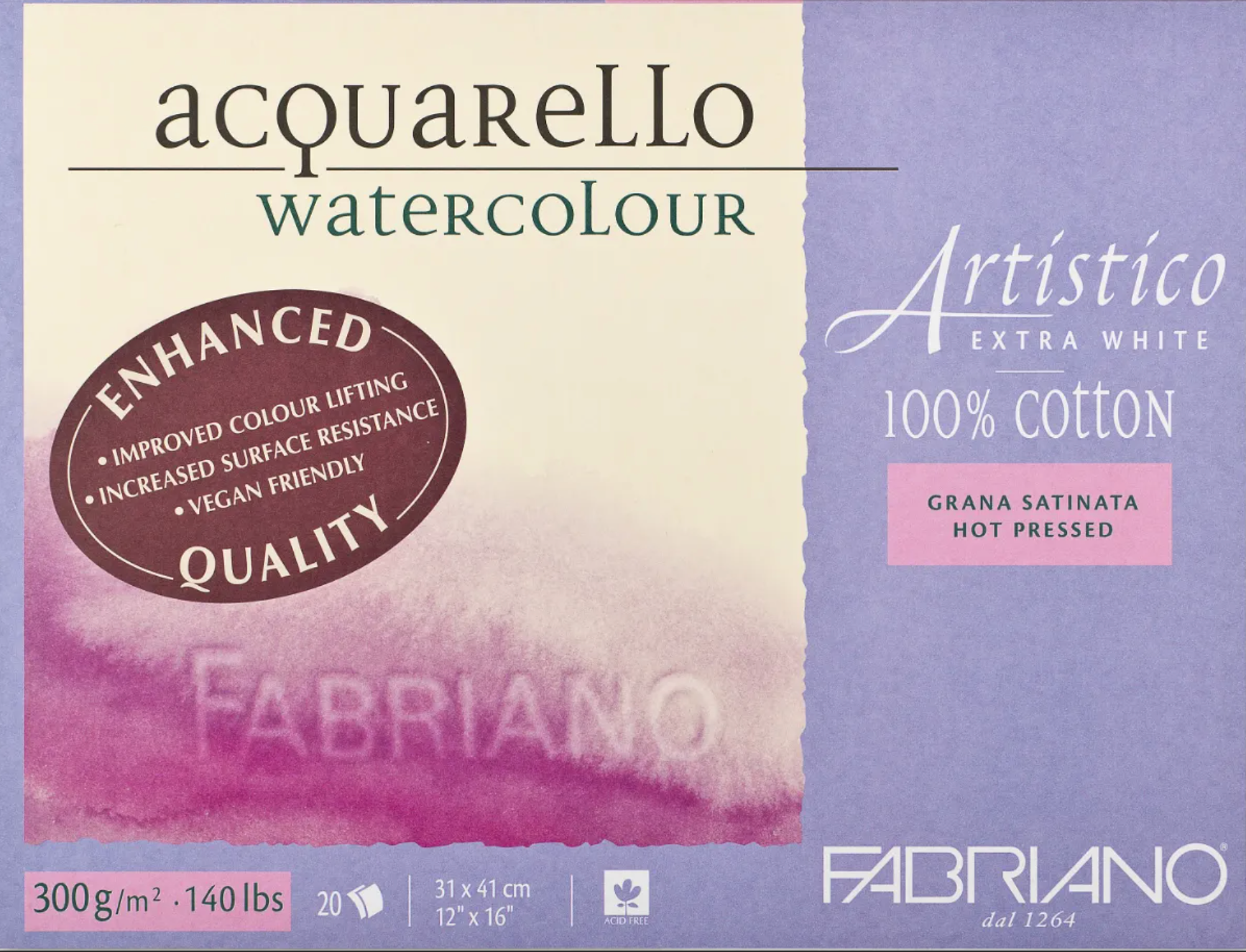 Fabriano artistico watercolour enhanced 300gsm hot press extra white 20 sheet blocks