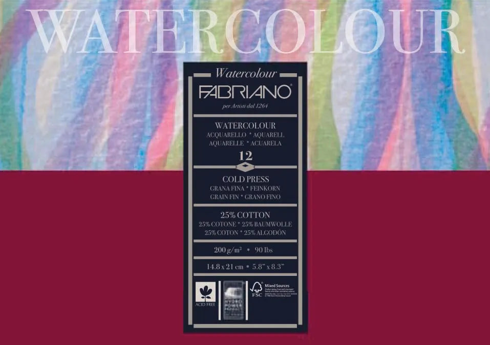 Fabriano studio watercolour 200gsm cold pressed 12 sheet pads