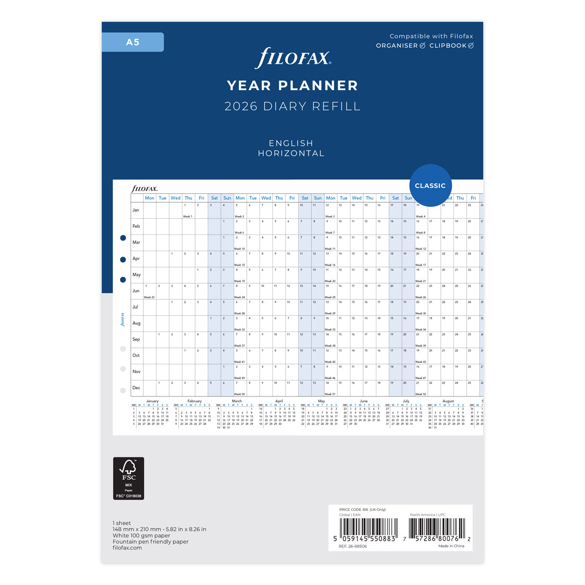 $14.99$14.99/Plan your whole year with this A5 horizontal format fold-out year planner. 100 gsm fountain pen friendly paper. Compatible with Filofax A5 size Organisers & Clipbook.