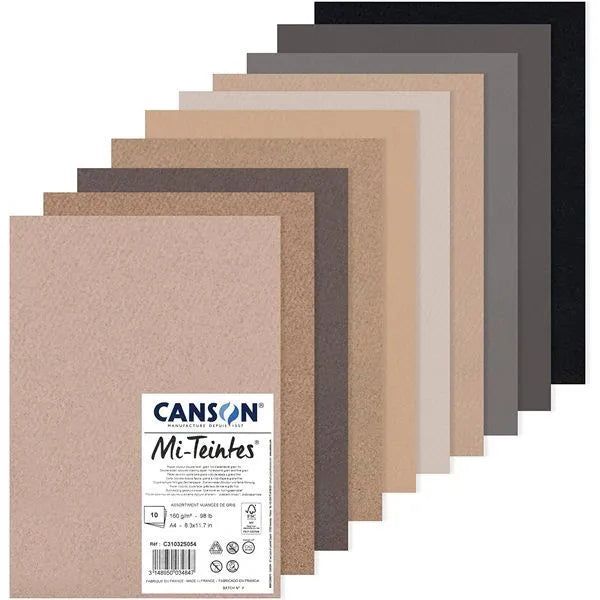 Canson mi-teintes paper a4 160gsm assorted colours paper pack of 10 sheets