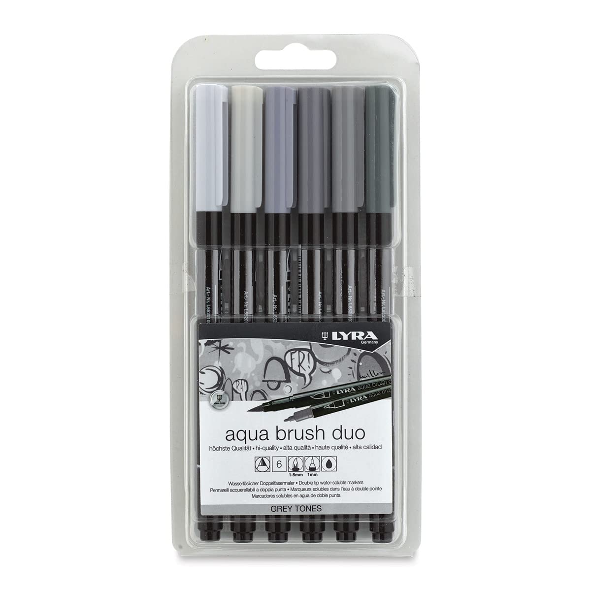 Lyra grey tones aqua dual brush markers pack of 6
