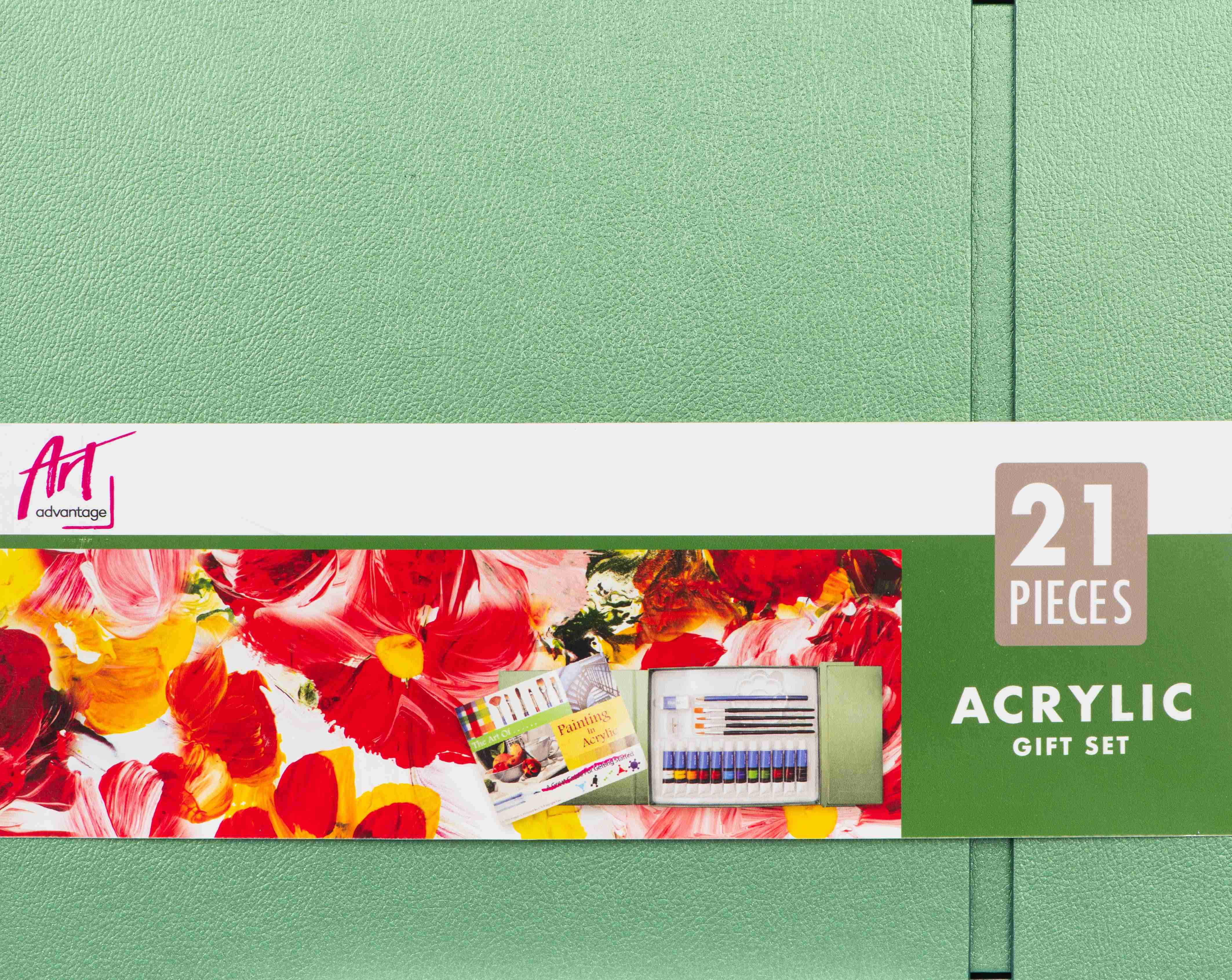 $29.99$29.99/ACRYLIC This set includes: 12 acrylic paint tubes 4 brushes, 2 flat 2 round 1 sketching pencil 2B 1 10 well plastic mixing palette 1 plastic...
