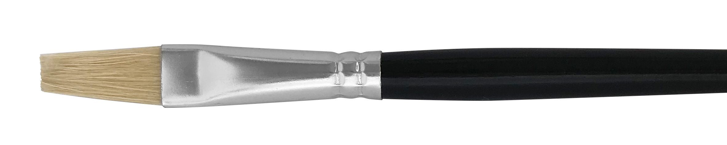 From $0.60From $0.60/Economical flat artist brush made from pure soft Chinese hog bristle. This brush has seamless ferrules and short black wooden handles.