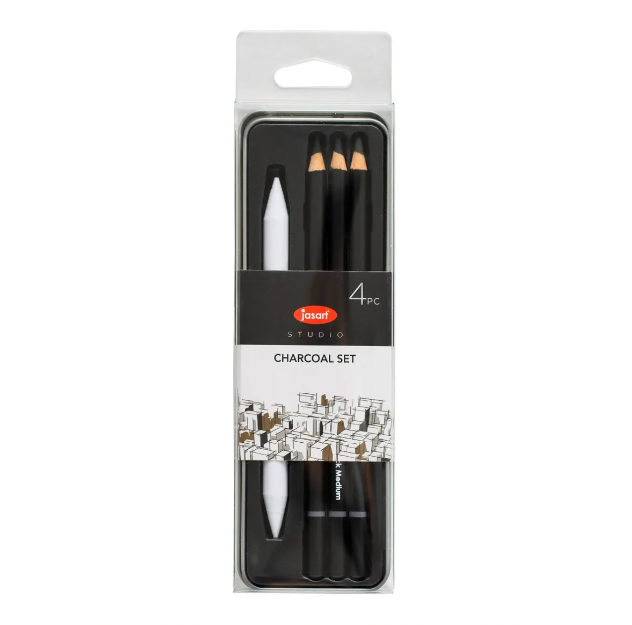 Jasart studio charcoal tin of 4