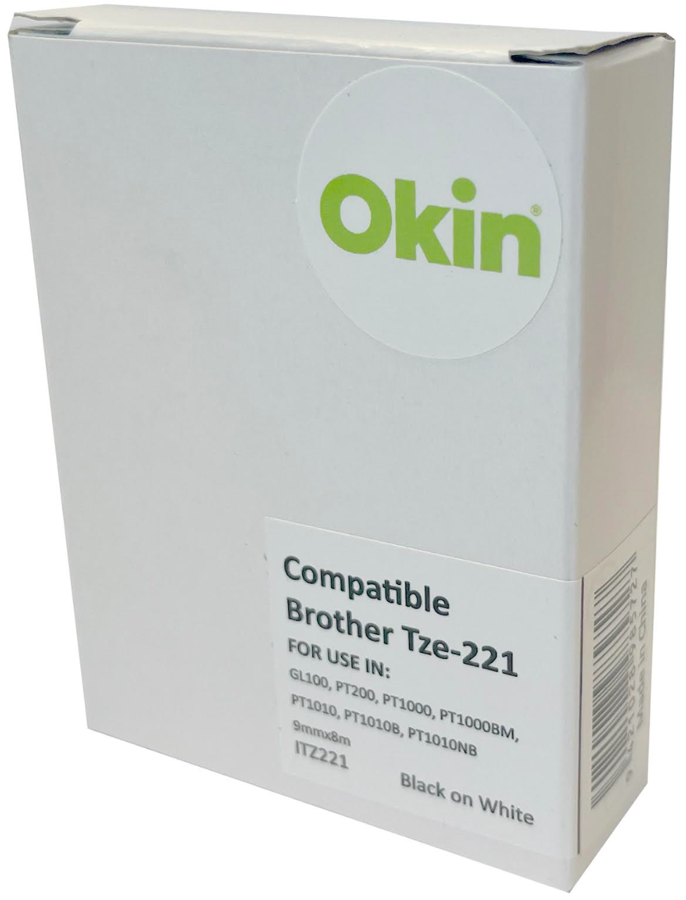 Okin compatible brother tz tape 9mm black on white