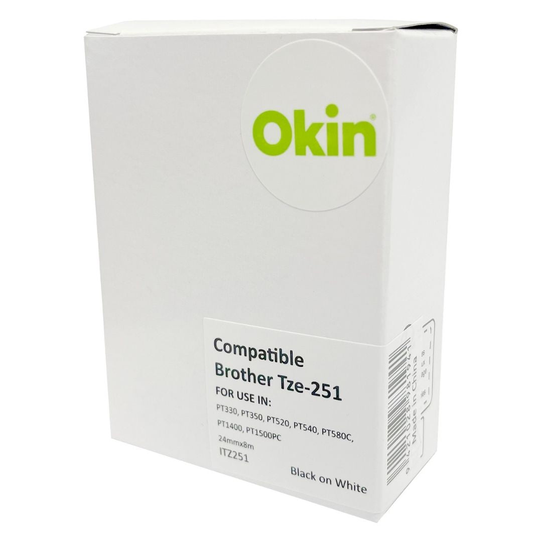 Okin compatible brother tz tape 24mm black on white