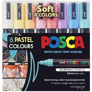 Uni posca pc-5m 1.8-2.5mm soft colours markers set of 8