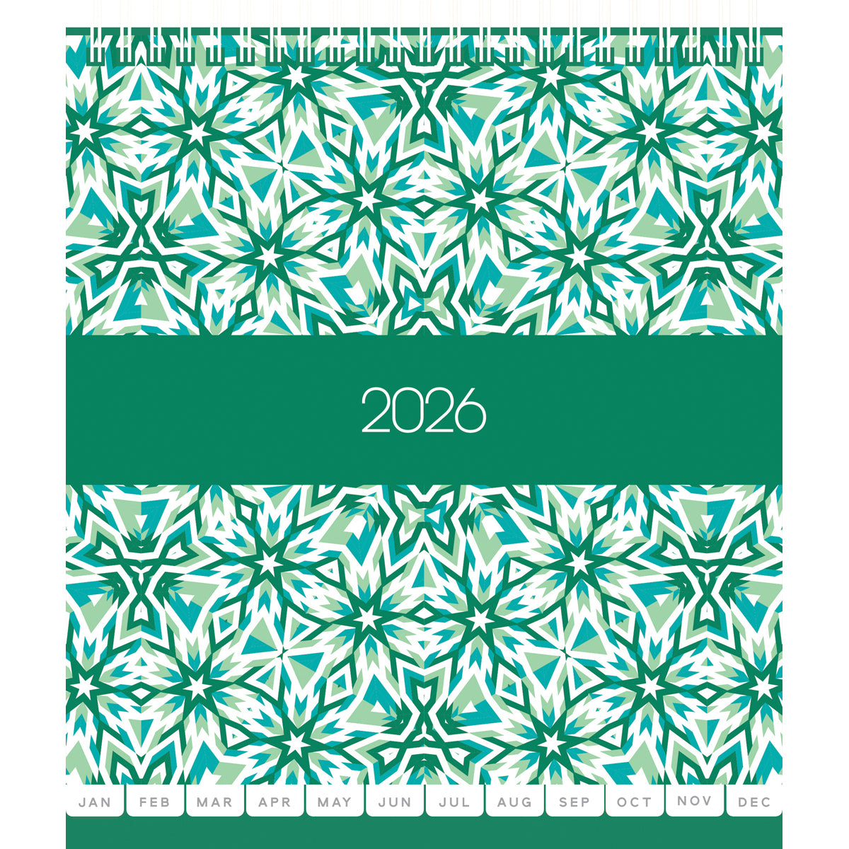 210x175mm. Month to view. Top opening with white wiro. Flexible, printed board cover. FSC Certified.
