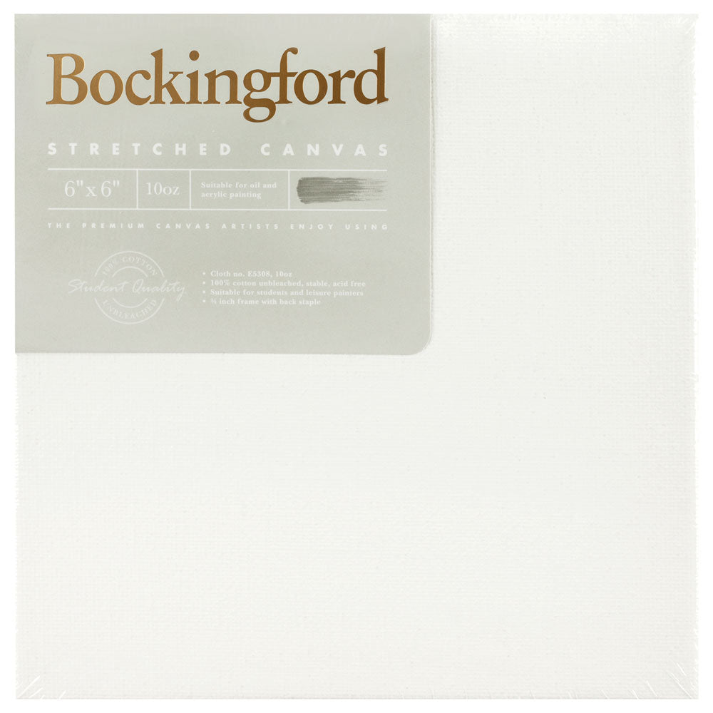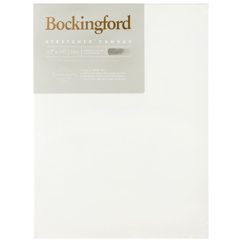 This heavy-weight 10oz Bockingford Stretched Canvas with 3/4 inch frame is made of 100% unbleached cotton in order to retain its natural tone and flexibility, and is suitable for acrylic, oil and airbrush paints.