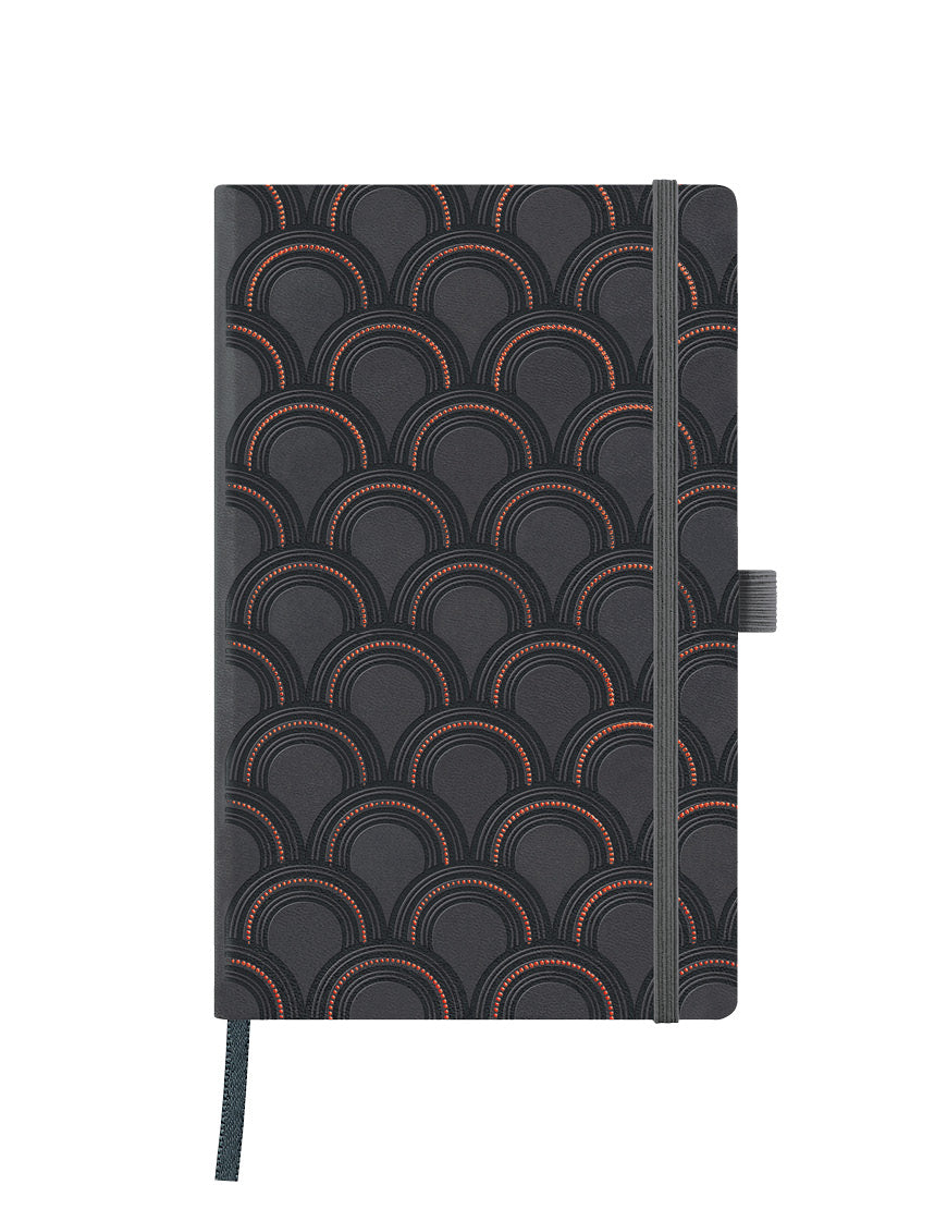 Luxury ornamental elements inspired by Italian design featured in copper and gold, providing an elegant tone. Size: 9 x 14cm - 192 Pages. Ivory paper with numbered pages. Inner Pocket. Bookmark. Elastic Closure. Copper coloured edges. Pen Loop.