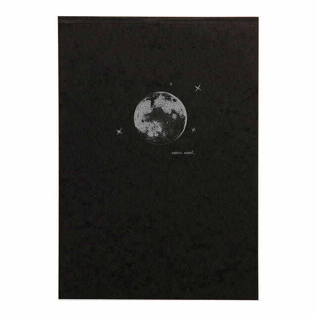 90gsm weight ivory paper. 50-sheet sewn spine book. Black glossy cover.