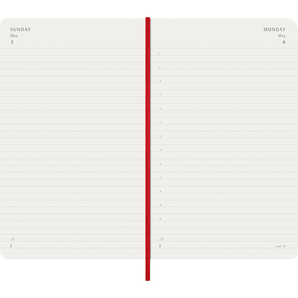 The Moleskine Soft Cover Large Daily Diary is dated from January to December. Formatted to show each day on its own page, this popular planner comes in a full spectrum of colors to capture each day of the year in detail. Features: elastic closure, expandable inner pocket, matching ribbon bookmark, Ivory-colored 70 gsm acid-free paper.