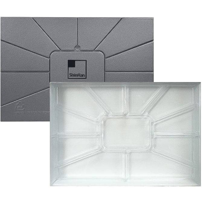 ShinHan Professional Watercolor Subsidiary Palette 11 is made of lightweight, impact-resistant polycarbonate. Its material resists chemical degradation, maintaining an impermeable surface that prevents paint from drying and clumping. It is designed to attach to and detach from the bottom of the PWC Extra Fine Watercolour Half Pan Set (12 Colors + 6 Wells). When combined, these two products expand paint storage and mixing areas to 29 compartments. Measures approx. 120 x 82 x 19mm.